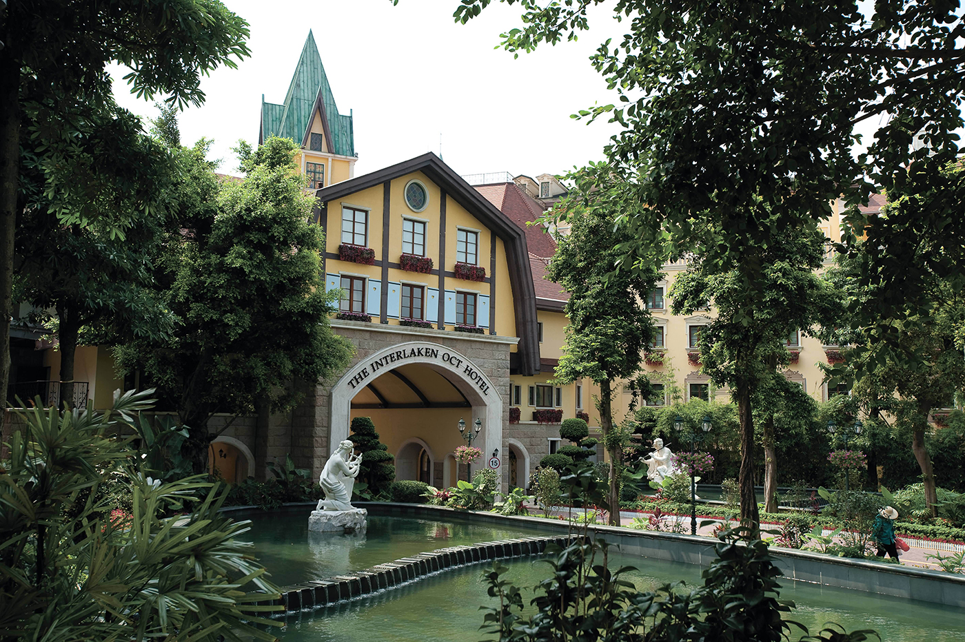 茵特拉根華僑城酒店,座落在深圳東部華僑城茵特拉根山地小鎮(zhèn)內(nèi),依山傍水而筑,既有自然天成的山水,也有歐洲典雅的小鎮(zhèn)風(fēng)光。酒店主樓、連排別墅、公寓、池畔別墅、總統(tǒng)別墅等各類建筑交相輝映。酒店的建筑設(shè)計(jì)獨(dú)具匠心,將藝術(shù)元素滲透到每個(gè)細(xì)節(jié)的設(shè)計(jì)當(dāng)中。