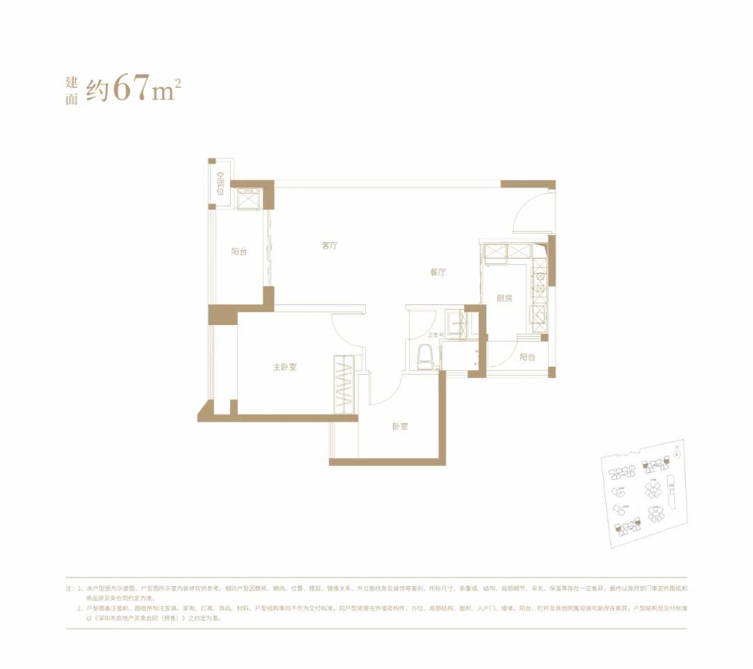 建面約67㎡的戶型是整個片區(qū)內唯一70㎡以下的稀缺小戶型,兩房設計,臥室均帶飄窗,雙陽臺設計,空間利用到極致!