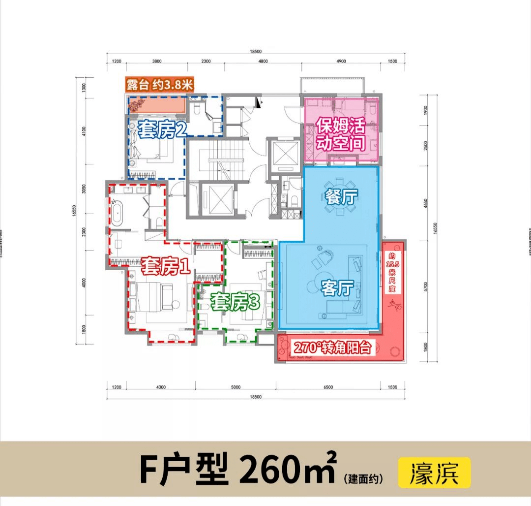 借鑒方圓高改住區(qū)打造經(jīng)驗,萬科再次前置洞察,深入挖掘客戶潛在需求,對攬境的空間設(shè)計進行了全面升級,打造建面約118-260㎡的全能戶型,亮點頗多: