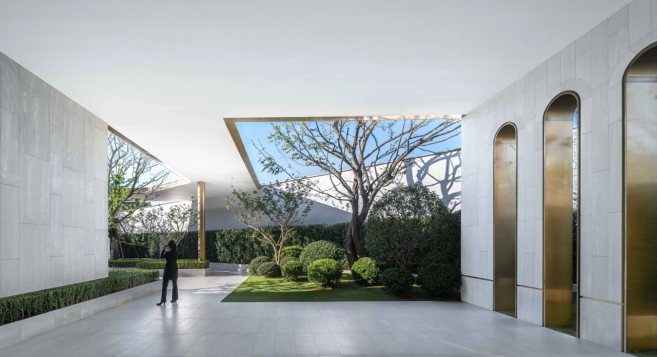 設(shè)計主創(chuàng)在事先并未受到強(qiáng)制規(guī)定的前提下,提出將最大化的尊重場地現(xiàn)有的自然要素,保留區(qū)域內(nèi)具有年代感的“老槐樹“,同時借景滲透,融合自然之境。