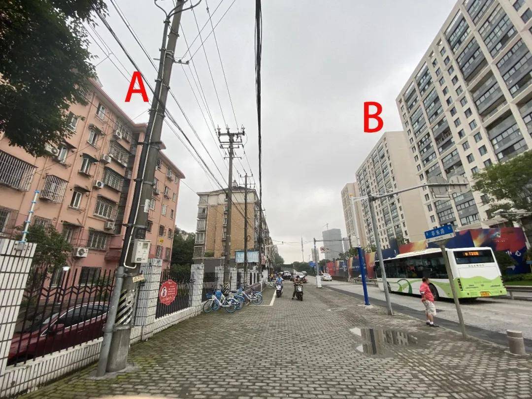 圖片中馬路兩旁,有AB兩個(gè)樓盤(pán)。他們因?yàn)橥饬⒚娴挠貌?,風(fēng)格,建筑時(shí)間的不同,呈現(xiàn)出了兩種不一樣的狀態(tài)。