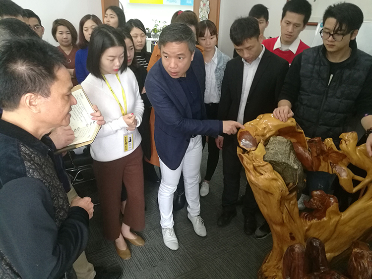 3月18日,福建省花卉協(xié)會根藝專業(yè)委員會副會長陳志明先生到訪寶億萊,并高興地現(xiàn)場指導(dǎo)寶億萊軟裝設(shè)計師們學(xué)習(xí)傳統(tǒng)根雕藝術(shù)。