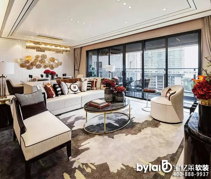 寶億萊軟裝案例:河北滄州頤和尚城130平戶(hù)型樣板間