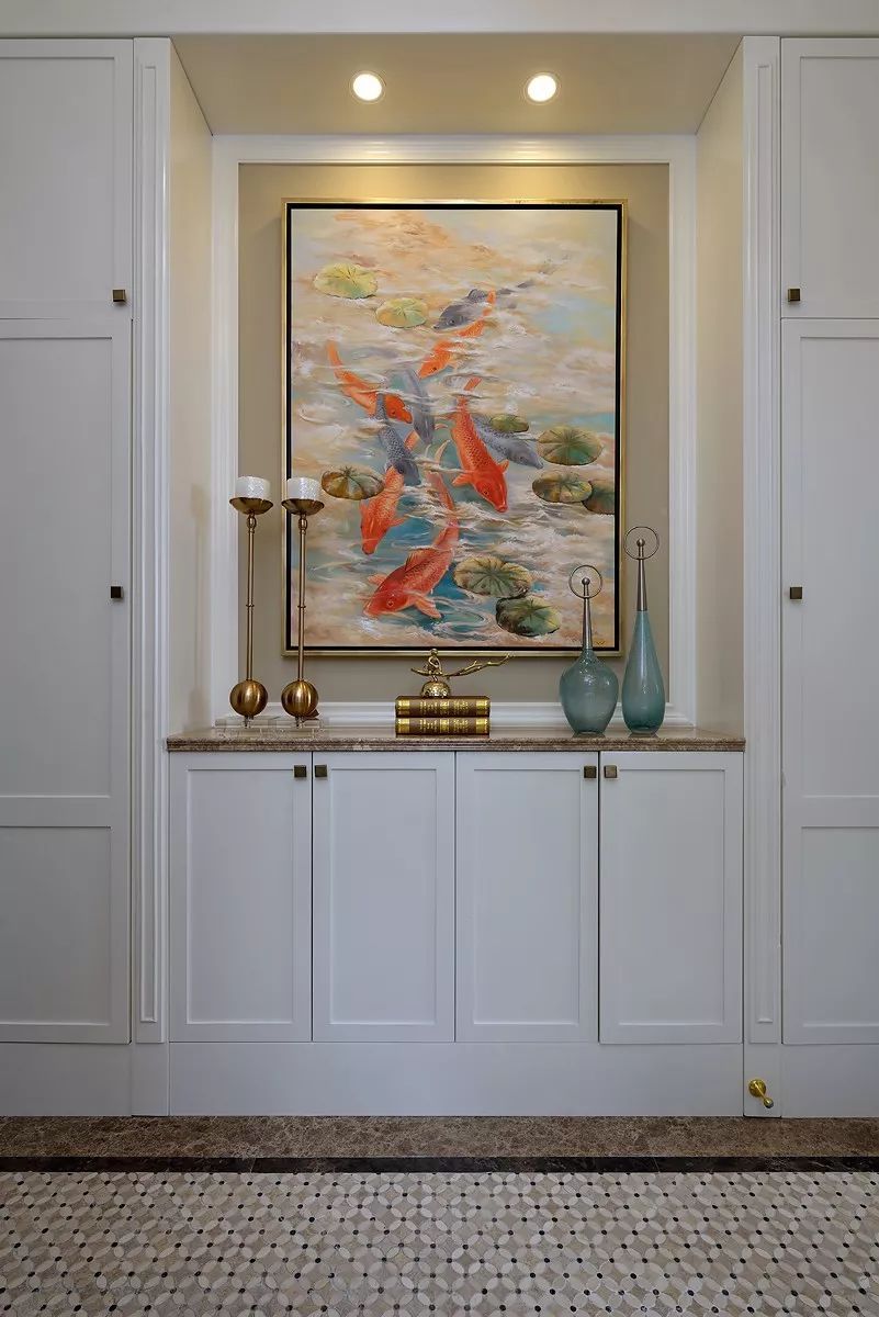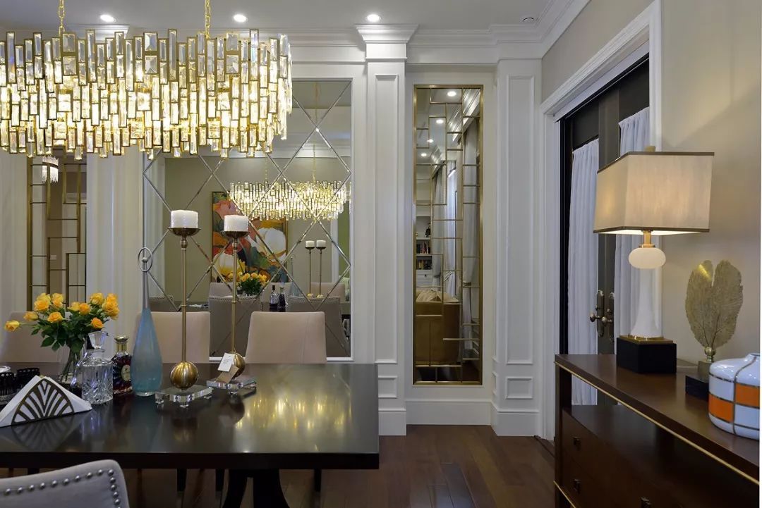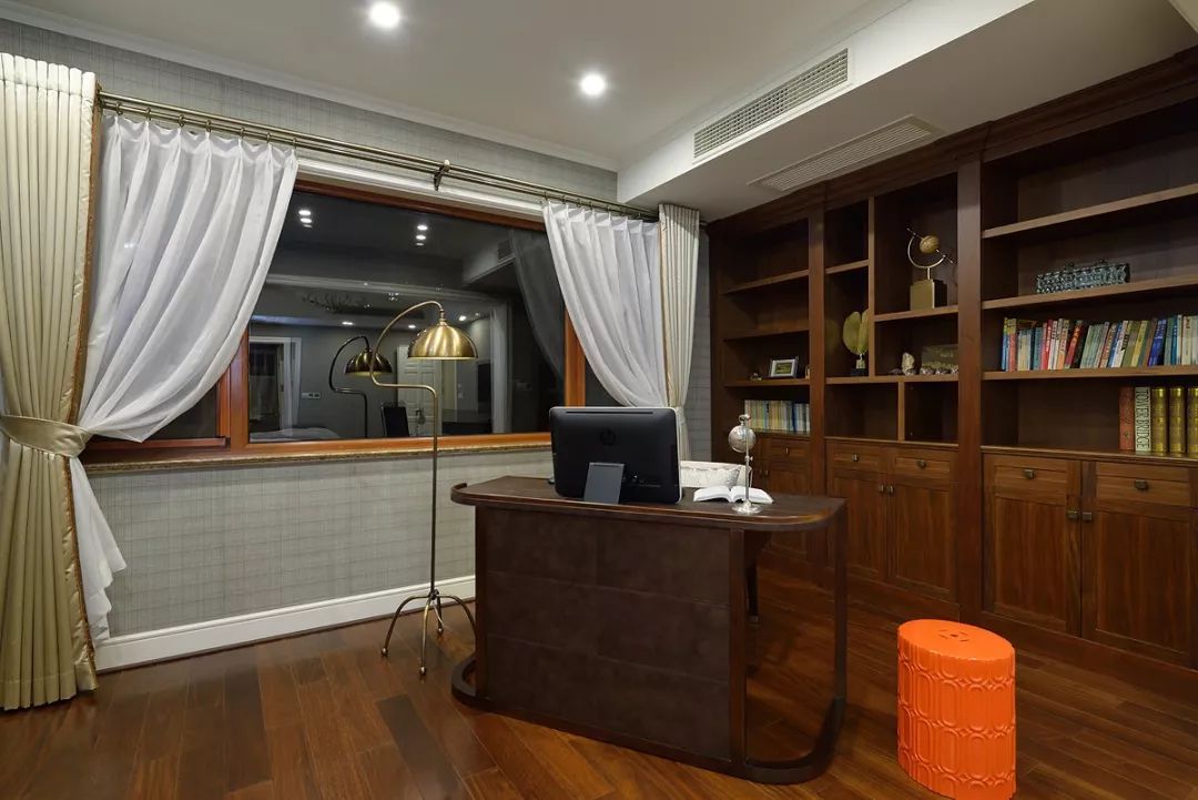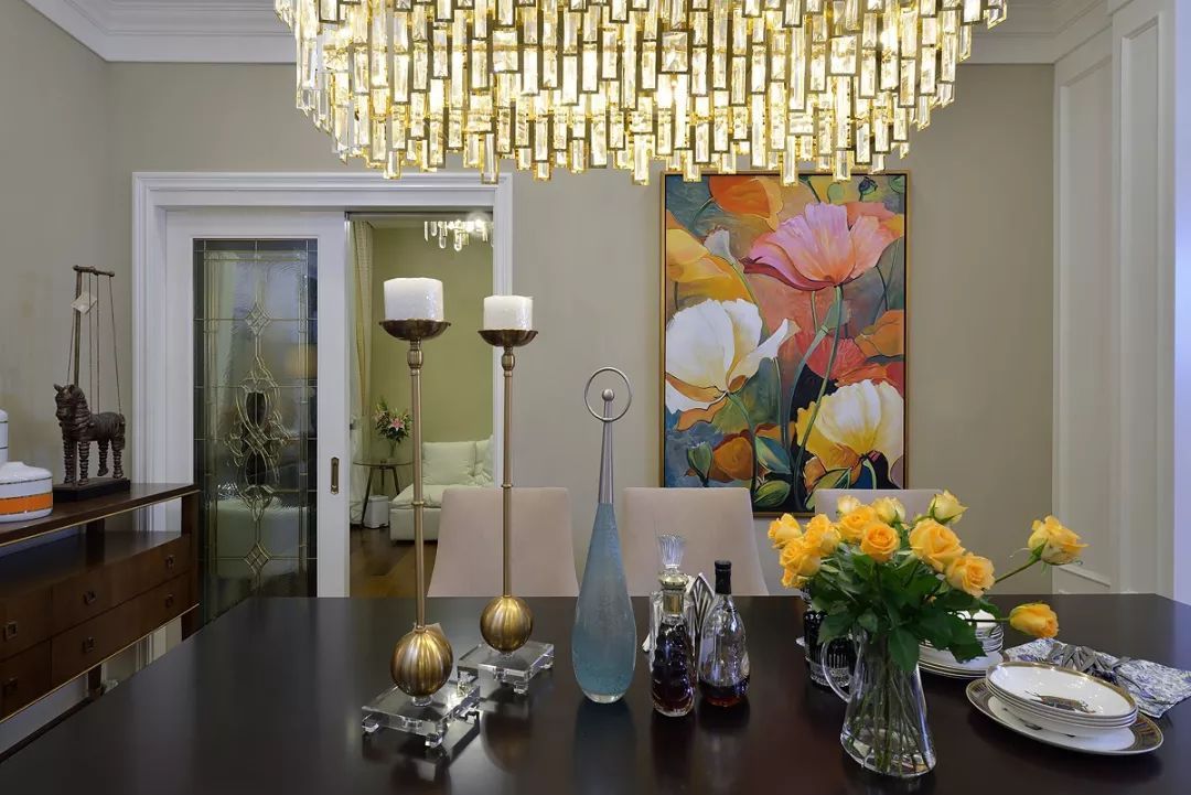 開放式廚房中西結(jié)合采光不屬于其他空間,中間的島臺(tái)即使會(huì)客也能從容應(yīng)對(duì),便美式的用餐習(xí)慣和社交形式,一家人的溫和與融合也能在房間功能上有提現(xiàn)。