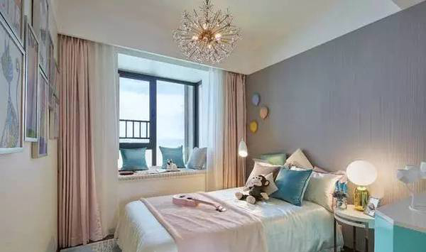 兒童房充盈著有關(guān)童年記憶的小確幸,三白配一灰的四面墻色彩設(shè)計(jì),讓小天地產(chǎn)生景深的視覺感。