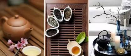 陳列手法上,最常用的就是藝術設計中最簡單的布局手法——點線面。本案中三個杯子是三個點,底下一片樹葉代表線,托盤可以算作面。同樣的元素,不同的陳設方式,呈現的效果也截然不同。