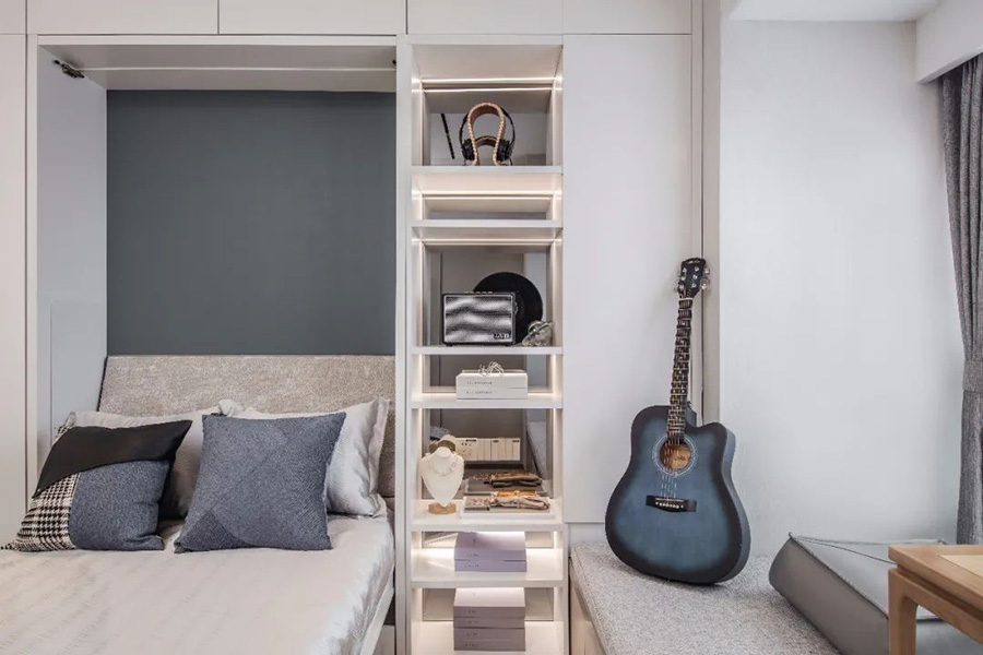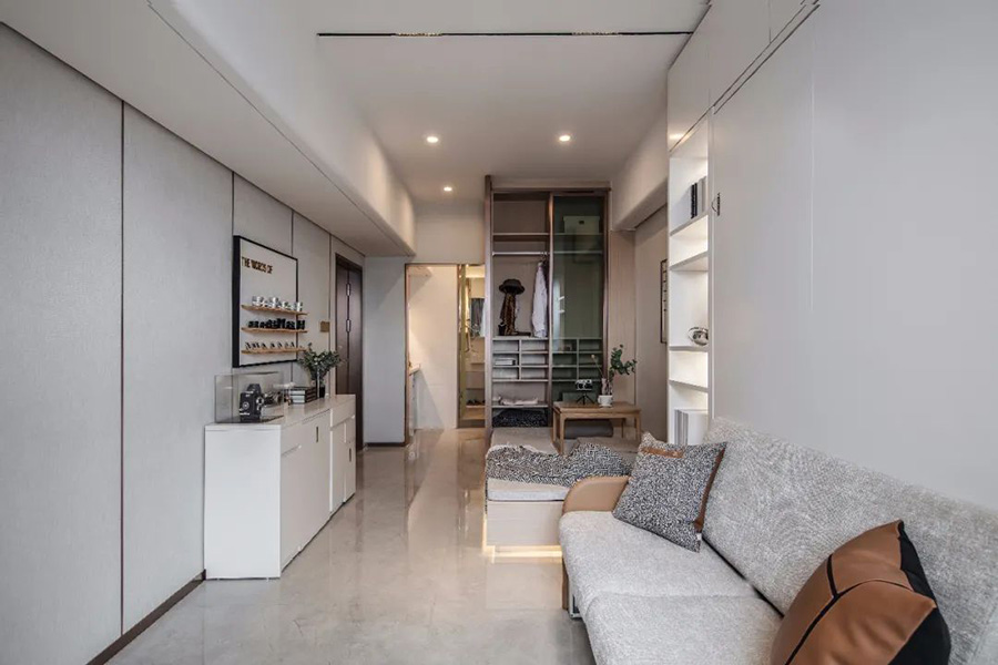 可變家具提高了空間的實用性,讓空間的功能一加一大于二。雖較小,但通過設(shè)計師的巧妙搭配,也能營造一種理想的生活氛圍。