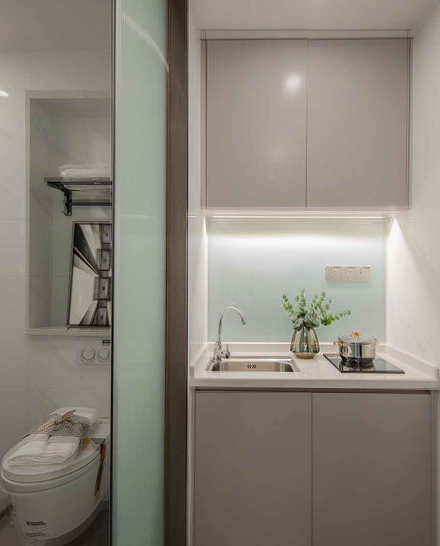 雅致可變的沙發(fā)床,讓這里一加一大于二;白天,它是小巧實用的沙發(fā),懶洋洋地享受美食,欣賞自己喜歡的紀錄片;晚上,它是一張柔軟而舒適的雙人床,帶給你美好的夢想。