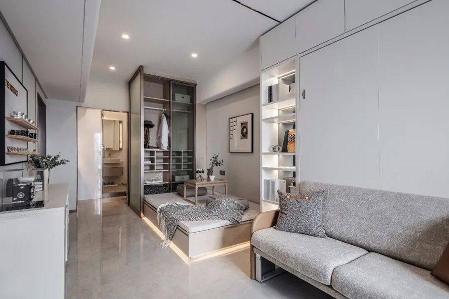 變型家具增加了生活的舒適度,白天、晚上兩種生活場景隨時切換,營造出一種精致舒適的多功能家居。