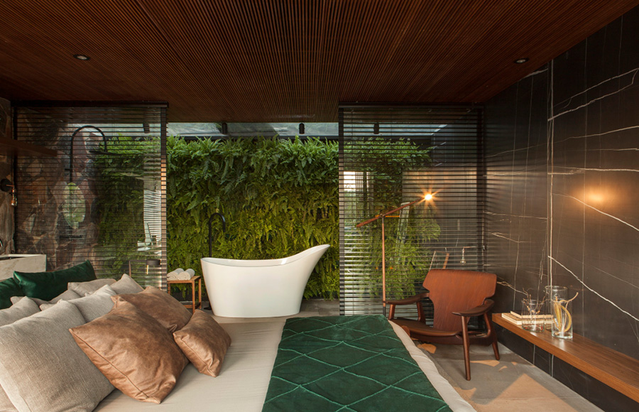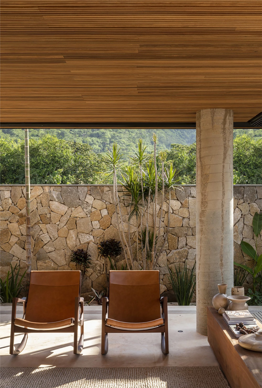 內(nèi)部軟裝由巴西著名設(shè)計師Jader Almeida、Paulo Alves和奧地利設(shè)計師Martin Eisler等設(shè)計,以及未經(jīng)雕琢的石墩,創(chuàng)造出自然質(zhì)樸與精致生活的巧妙融合。