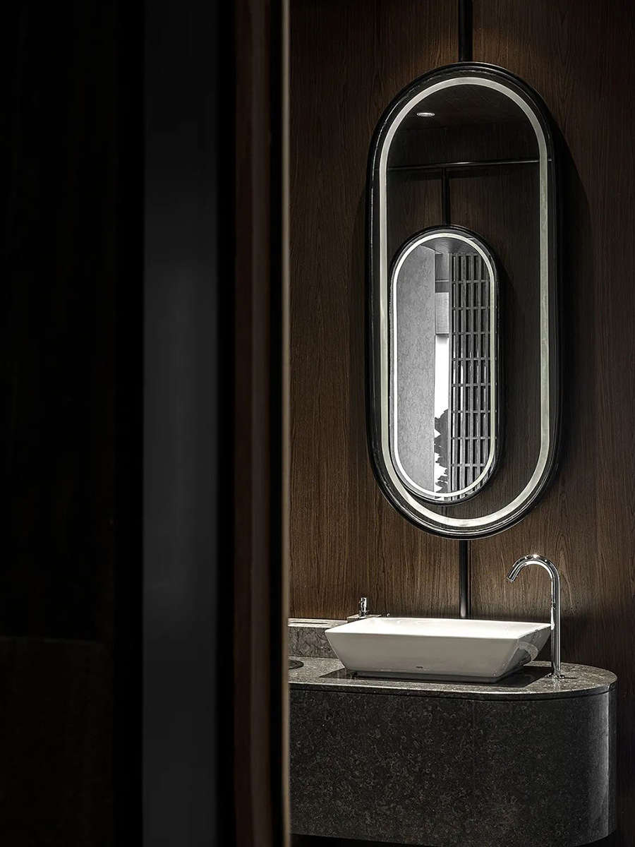 墻壁的肌理在柔和的光線下透出樸素的人文氣息,木材也散發(fā)著凝重并呈的氣質(zhì),整個空間沉淀了一絲靜謐。