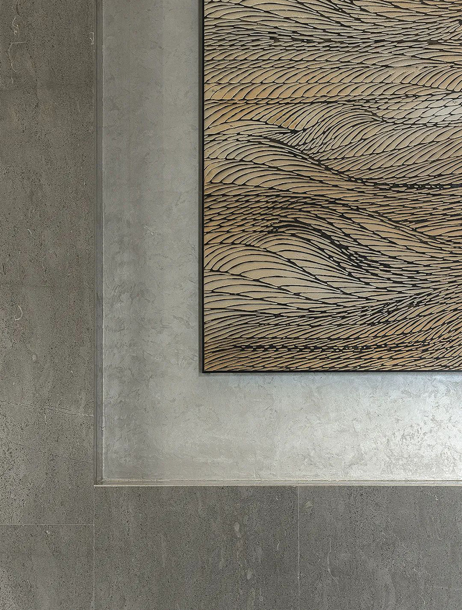 景墻上的藝術(shù)浮雕散開如絮,凝結(jié)著浮華、飄渺不定的虛幻,同時又蘊含著東方的浪漫情結(jié),成為空間和禪意的結(jié)合。