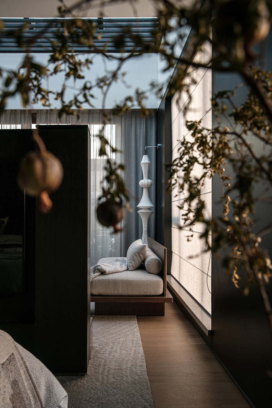 在白天的時(shí)間里,在忙碌的日常生活中總會(huì)有關(guān)于空間和身體的千萬(wàn)種互動(dòng),設(shè)計(jì)師希望通過與大自然四季更緊密的關(guān)系,引導(dǎo)人們進(jìn)入更深層次的敘事和思考。