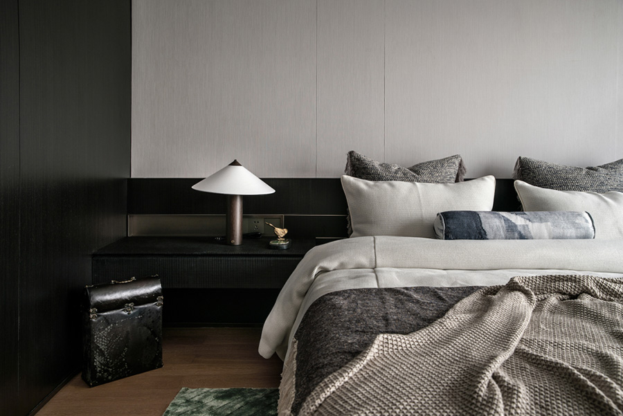 臥房空間布局動(dòng)線流暢舒適,房間部分頂面處理引入自然光。