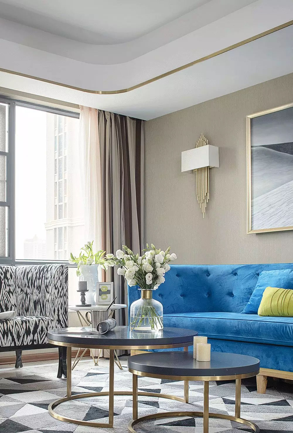 在以咖、灰、金為主色調(diào)的空間氛圍中,亮眼的撞色搭配更有利于營造出一種活潑輕快的氛圍,和諧又有層次感,充分滿足了輕奢族對于品質(zhì)居住的完美想象。