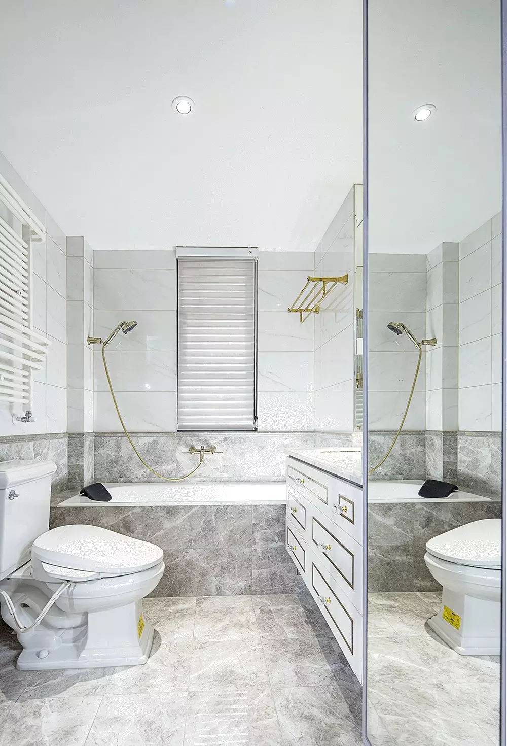 吧臺處大理石與鏡子的巧妙結(jié)合,在彰顯空間精致感之余,也起到了視覺延伸的作用;