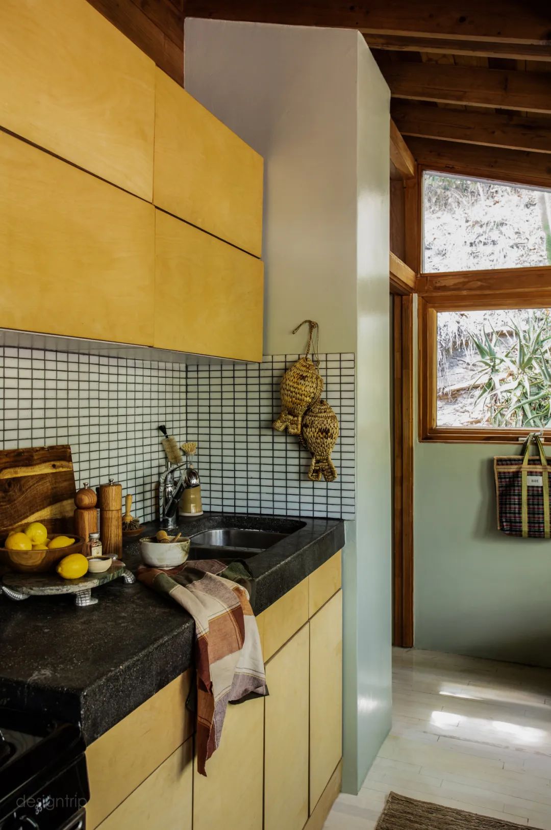 Lauren改造了這座住宅原來的廚柜,她為廚柜增添了油漆飾面,并且加入了細小的格子瓷磚,打造復古懷舊的感覺。