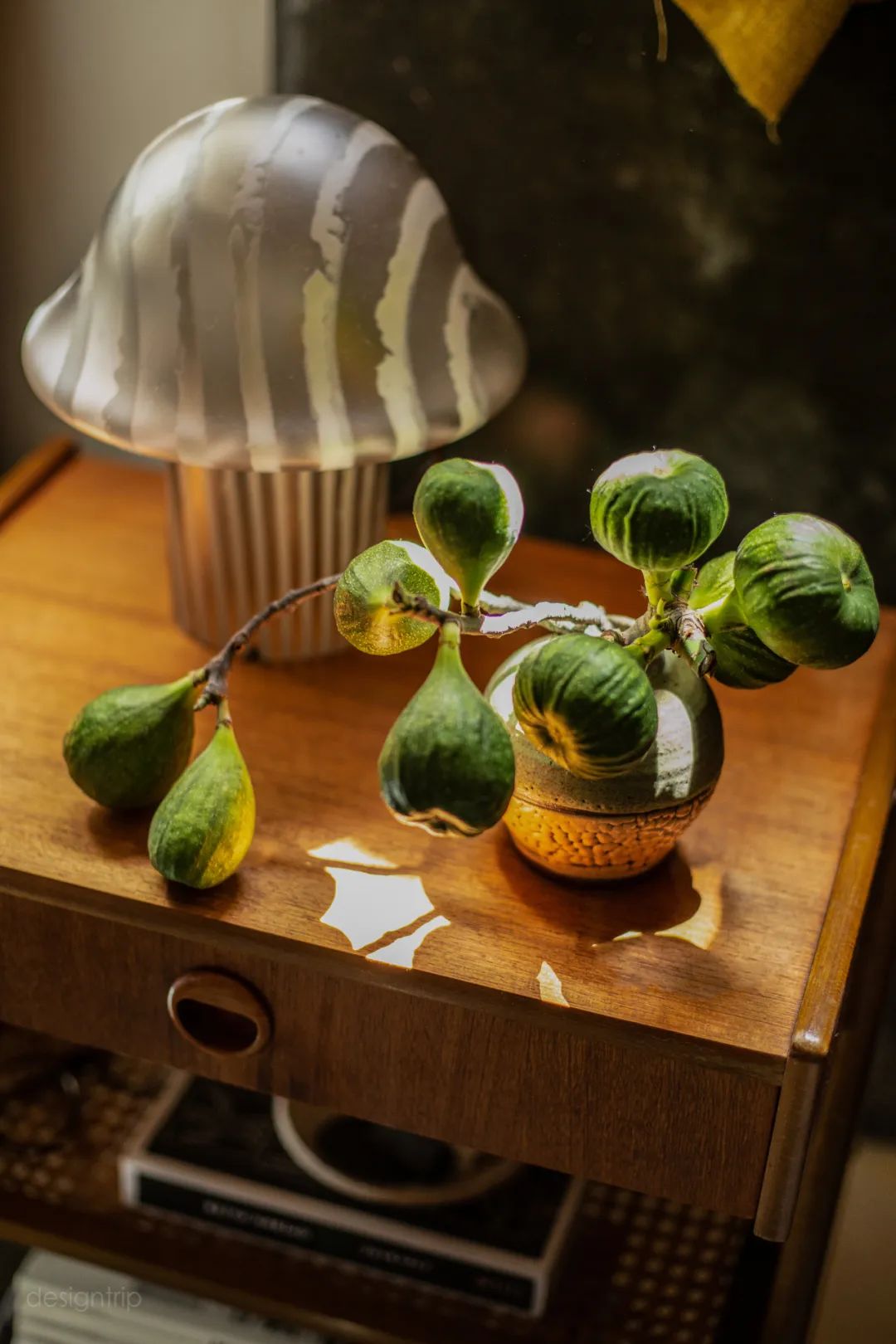 除了來自日本的陳舊織品,Lauren的家里還充斥著各種不同材料的家具,如水磨石飾面的書桌、陳舊的書柜、簡約卻獨特的花瓶以及來自自然的折枝等等,它們因為材質(zhì)的不同而處于一屋,從不同的角度創(chuàng)造出了一個侘寂的美學空間。