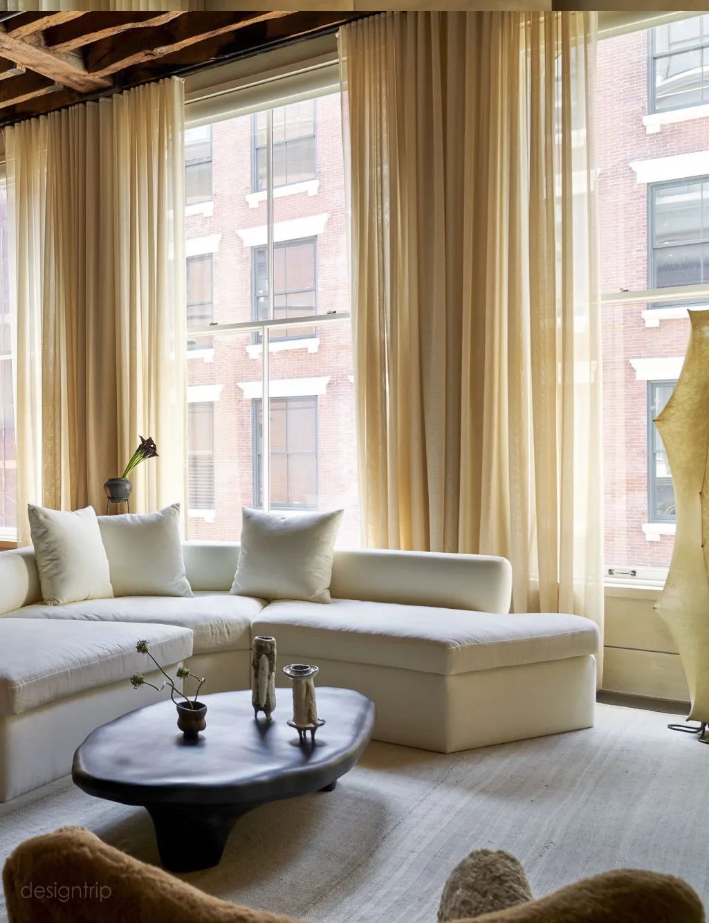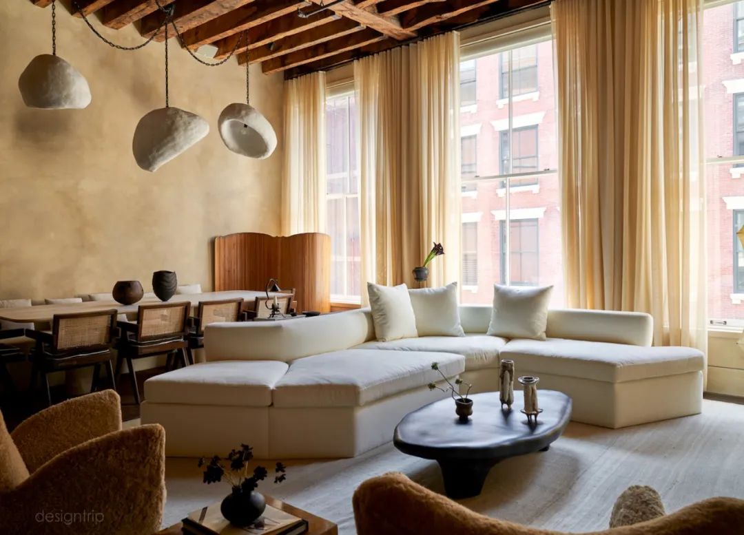 蘇豪區(qū)閣樓是Lauren為時裝設計師與時尚博主Danielle Berstein設計的住宅。Danielle 是Lauren的好友,二人對于侘寂的欣賞有著高度的統(tǒng)一性。在與Danielle的密切合作中,Lauren采用了侘寂的設計原則,將公寓包裹在溫暖、自然的色調(diào)和泥土紋理中,創(chuàng)造了一個遠離紐約城市喧囂的舒適的避難所。