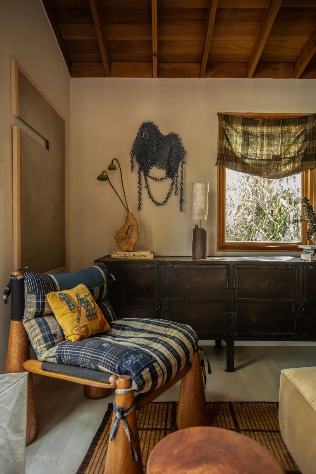 Lauren Piscione喜歡那些古色古香的單品,尤其是有機材料制成的,她從中看到了獨特的美感,包括歷史的感覺。在這座住宅中也放置了大量的日本古董紡織品,它們古老而破爛不堪。但即使它們有十分明顯的修補,依舊不妨礙Lauren對它們的喜愛。