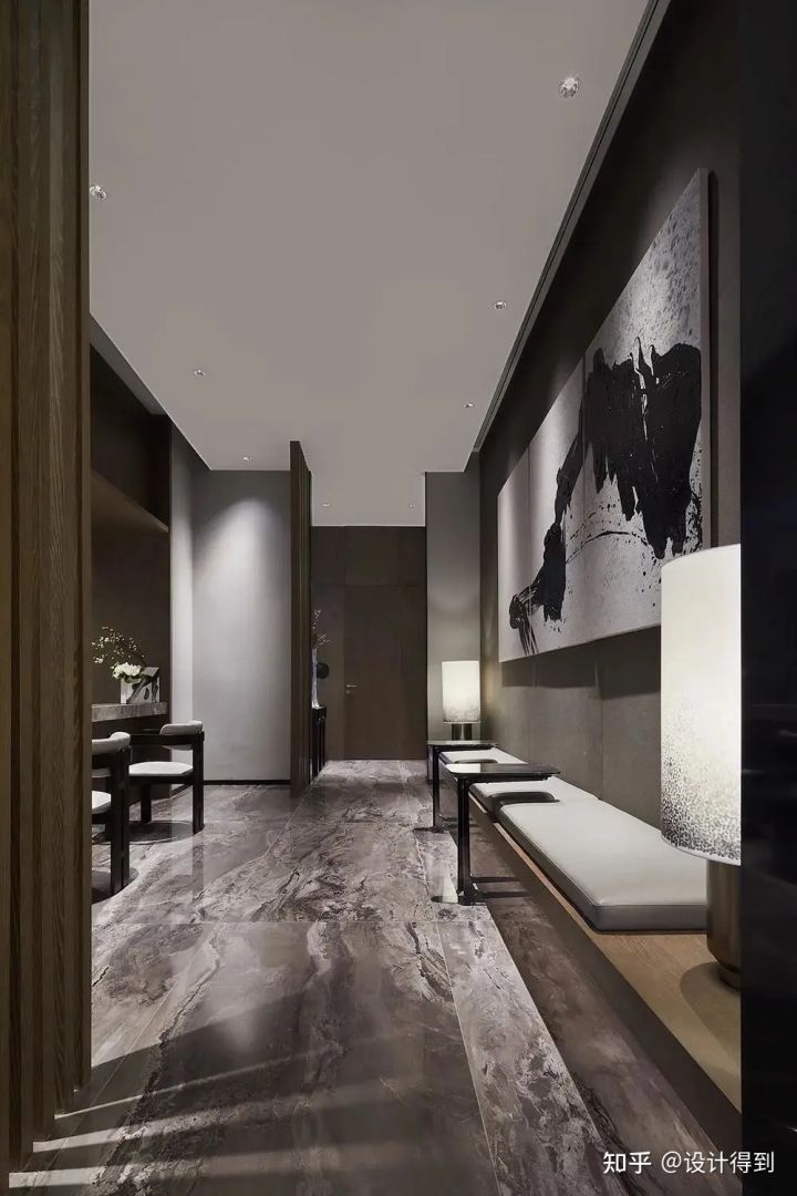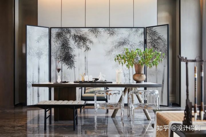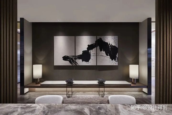 設(shè)計師的靈感來源:自然界的石、水、木,并融入了金屬,在意境亞洲的主導(dǎo)氛圍之下,尋求更多的現(xiàn)代情致。