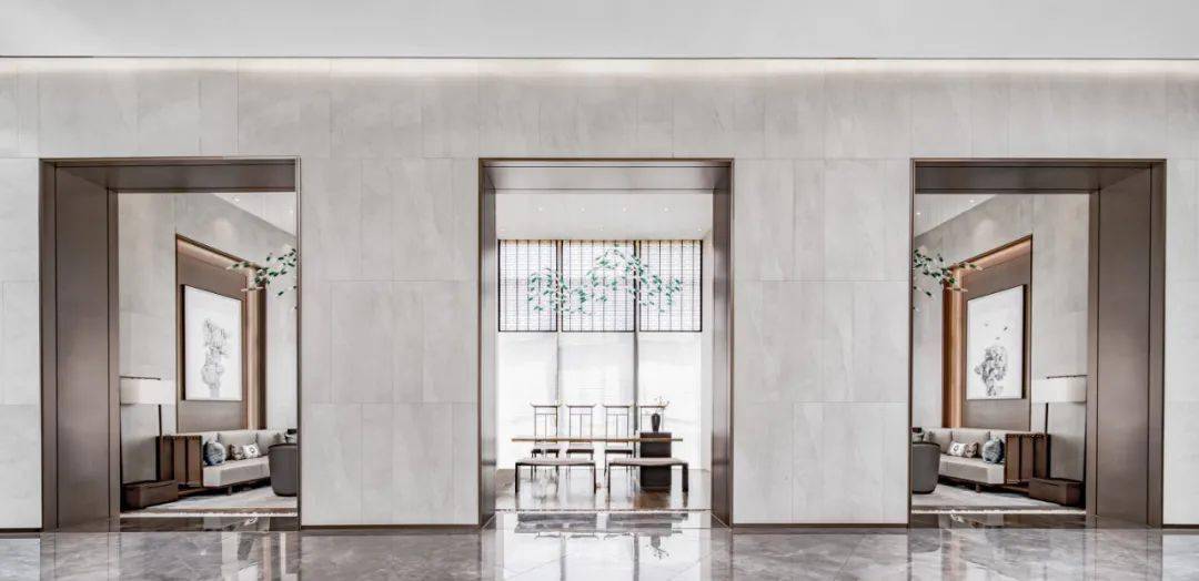 無間設(shè)計創(chuàng)始人吳濱也是對稱手法的大成者,在他的售樓處項目里,隨處可見對稱布局,對稱產(chǎn)生平衡感,而“平衡”是空間意境的關(guān)鍵,不僅如此,對稱還能讓空間更莊重,有儀式感。
